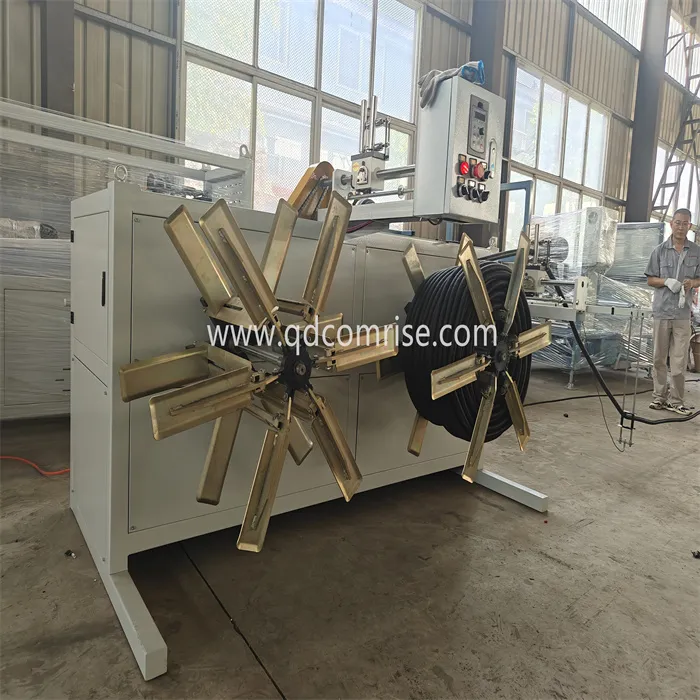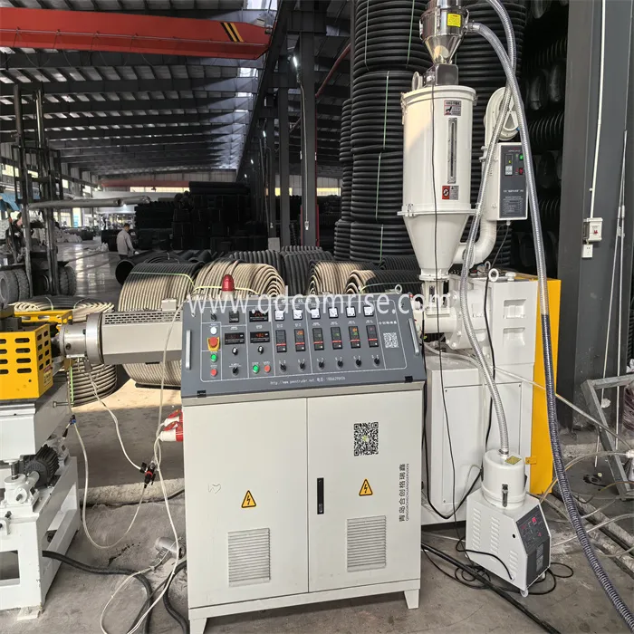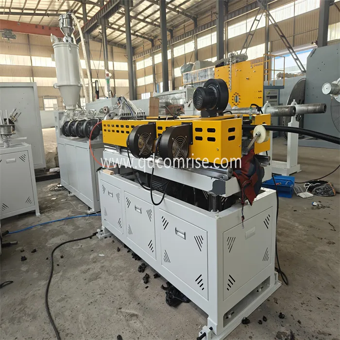 पाईप कोरीगेटरमध्ये प्रवेश करते, जिथे ते मोल्ड ब्लॉक्स आणि व्हॅक्यूम प्रेशरचा वापर करून नालीदार प्रोफाइलमध्ये आकार दिले जाते.