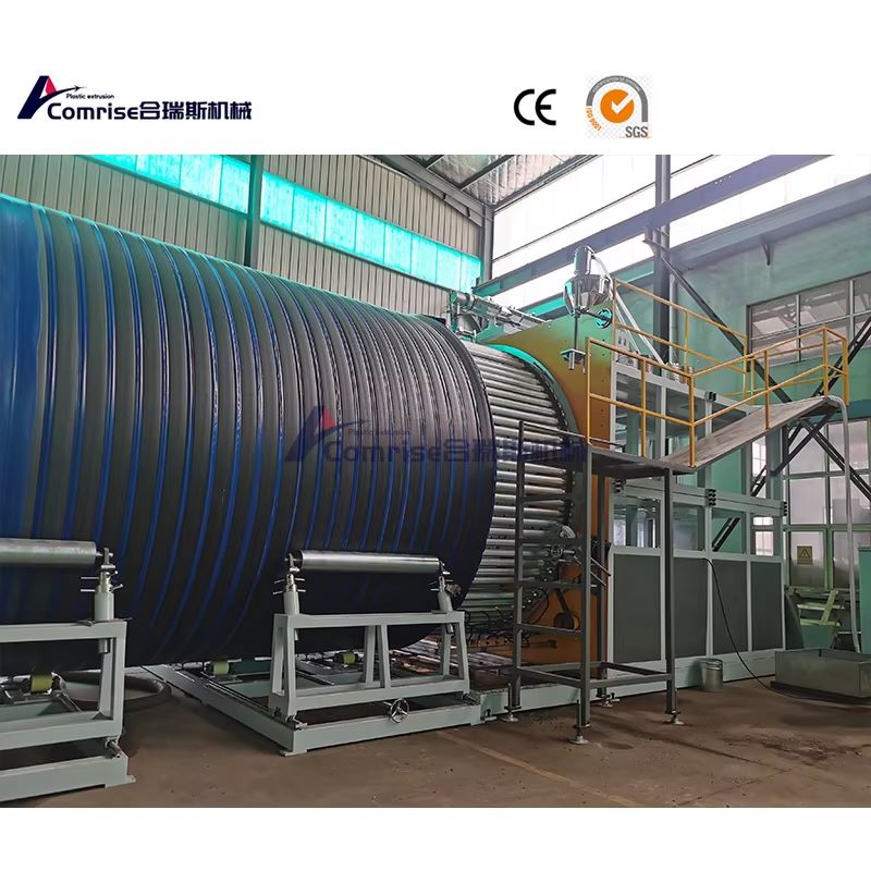 कॉमराईज मोठ्या व्यास एचडीपीई पाईप्स आणि एफआर-पीपी पाईप्सच्या उत्पादन लाइनसाठी देशांतर्गत आणि आंतरराष्ट्रीय स्त्रोतांकडून नवीनतम तंत्रज्ञान आत्मसात करते. हे 200-3200 मिमीच्या मोठ्या व्यासासह ड्रेनेज पाईप्स तयार करू शकते. एचडीपीई लार्ज-व्यासाचा होलाउनस वॉल विंडिंग पाईप मशीन शहरी ड्रेनेज सिस्टमचे मुख्य प्रवाहातील उत्पादन वाढत आहे. हे हळूहळू स्टील पाईप्स आणि सिमेंट पाईप्सची जागा घेईल.