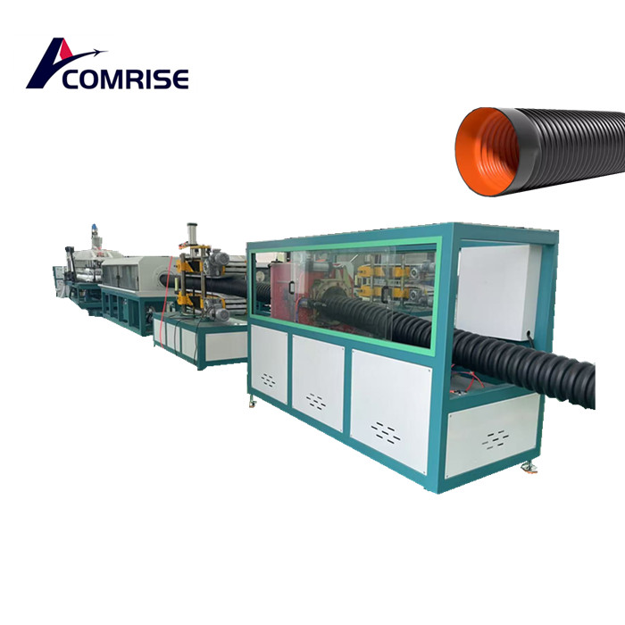 डबल वॉल कॉर्गेटेड पाईप मॅन्युफॅक्चरिंग मशीन हे आमच्या कंपनीचे गरम विक्रीचे उत्पादन आहे. हे कच्चा माल म्हणून पॉलिथिलीन/पॉलीप्रॉपिलिन कणांचे बनलेले आहे. तयार पाईप्सचा व्यास 40 मिमी ते 110 मिमी पर्यंत असतो आणि उत्पादित पाईप्समध्ये चांगले लहरी आकार, सुसंगत शिवण आणि गुळगुळीत आतील आणि बाह्य पृष्ठभाग असतात. उत्पादन लाइन वेग अंदाजे 2-4 मी/मिनिट आहे (विशिष्ट पाईप व्यासावर अवलंबून)