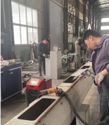 सिंगल स्क्रू एक्सट्रूडर color कलर स्ट्रिंग आणि मल्टी लेयर्ससाठी सह-एक्सट्रूडर → मोल्ड → व्हॅक्यूम कॅलिब्रेशन टँक → स्प्रे कूलिंग वॉटर टँक → हाउल-ऑफ → डस्ट कटर → स्टॅकर → अंतिम उत्पादन तपासणी व पॅकिंग