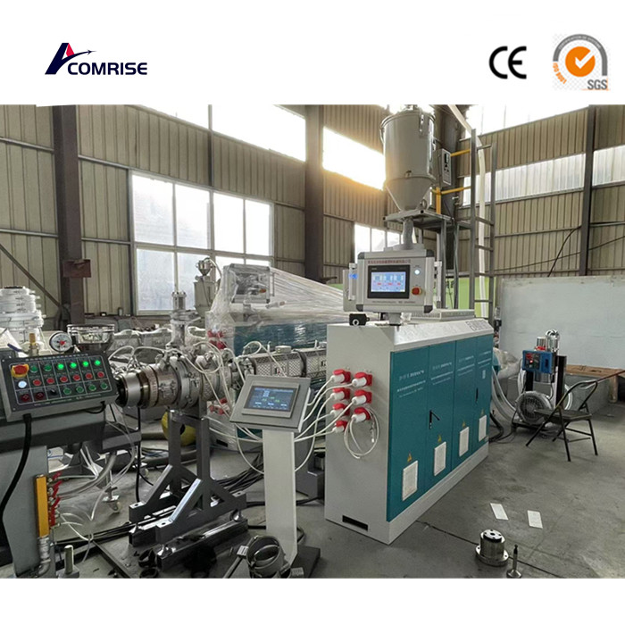 सिंगल स्क्रू एक्सट्रूडर → कलर स्ट्रिंग आणि मल्टी-लेयर को एक्सट्रूडर → मोल्ड → व्हॅक्यूम कॅलिब्रेशन टँक → स्प्रे कूलिंग वॉटर टँक → हुलिंग → धूळ काढत नाही → स्टॅकर → अंतिम उत्पादन तपासणी आणि पॅकेजिंग