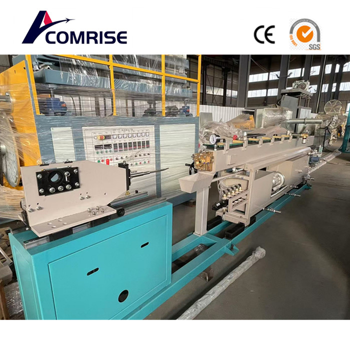 The entire equipment consists of the feeding system, droplet screening device, extruder, screen changer, mold, calibrator, vacuum cooling system, punching detection device, traction device, winding machine and other main components. The entire equipment is controlled by PLC and driven by servo motors, ensuring more precise control and ensuring the automation of the entire production line.