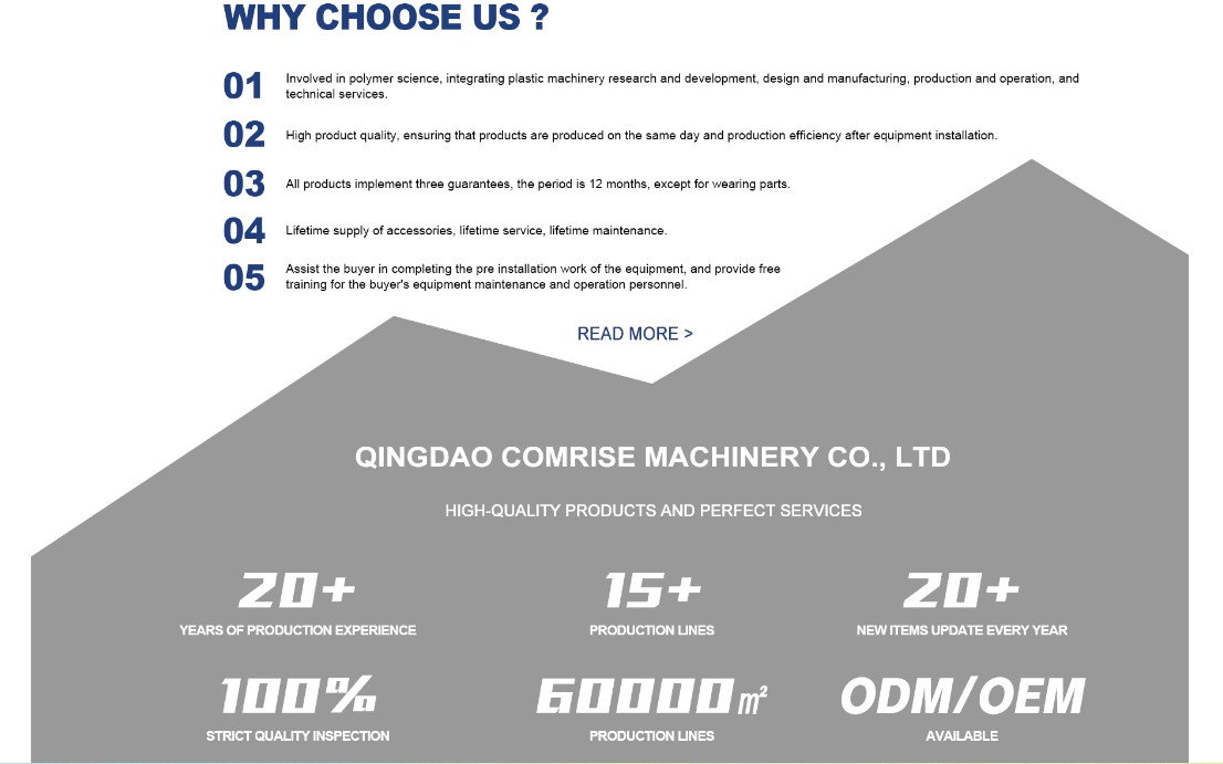 कॉमराईज फॅक्टरी दरवाजा आणि विंडो पॅनेल प्रोफाइल मेकिंग मशीनमध्ये मुख्यत: शंकूच्या आकाराचे ट्विन-स्क्रू एक्सट्रूडर, कूलिंग टेबल, एक कर्षण मशीन, एक कटिंग मशीन आणि स्टॅकर क्रेन असते. वेगवेगळ्या मोल्ड्स असून आम्ही पीव्हीसी विंडो आणि दरवाजा प्रोफाइल, पीव्हीसी वॉल पॅनल्स, पीव्हीसी विंडो सिल्स, कॅबिनेट दरवाजा पॅनेल्स, पडदे बॉक्स, पीव्हीसी ट्रक, केबल कंड्युएट्स, पीव्हीसी स्कर्टिंग बोर्ड, पीव्हीसी स्कर्टिंग बोर्ड, पीव्हीसी प्रोटेक्टिव्ह कोपर्स, पीव्हीसी प्रोटेक्टिव्ह कोपर्स, पीव्हीसी प्लास्टिक वुड्स तयार करू शकतो अशा विविध यूपीव्हीसी प्रोफाइल तयार करू शकतो आणि लाकडी प्लास्टिकची खिडकी असू शकते.